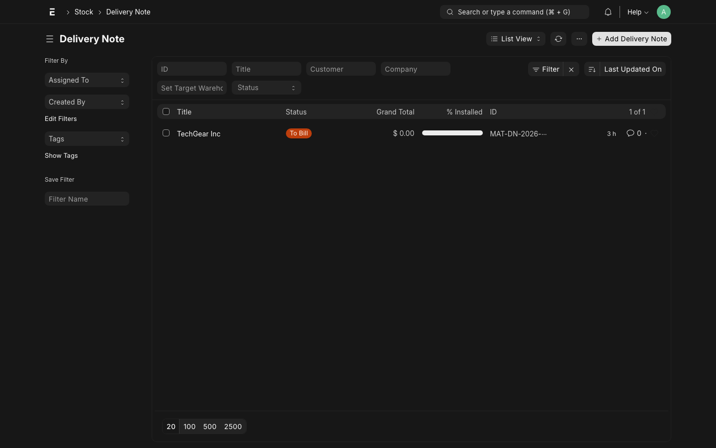 - Delivery Note is created in ERPNext: